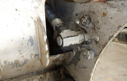 点検の結果、油漏れの原因はスイベルジョイントでした。本体が360度回転してもホースがねじれないようにオイルを送る重要な部品です。